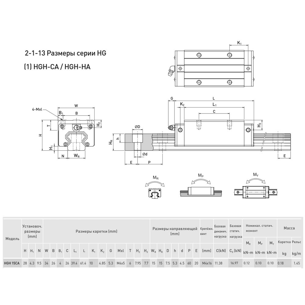 HG - серия шариковых линейных направляющих высокой грузоподъемности (Heavy Load);