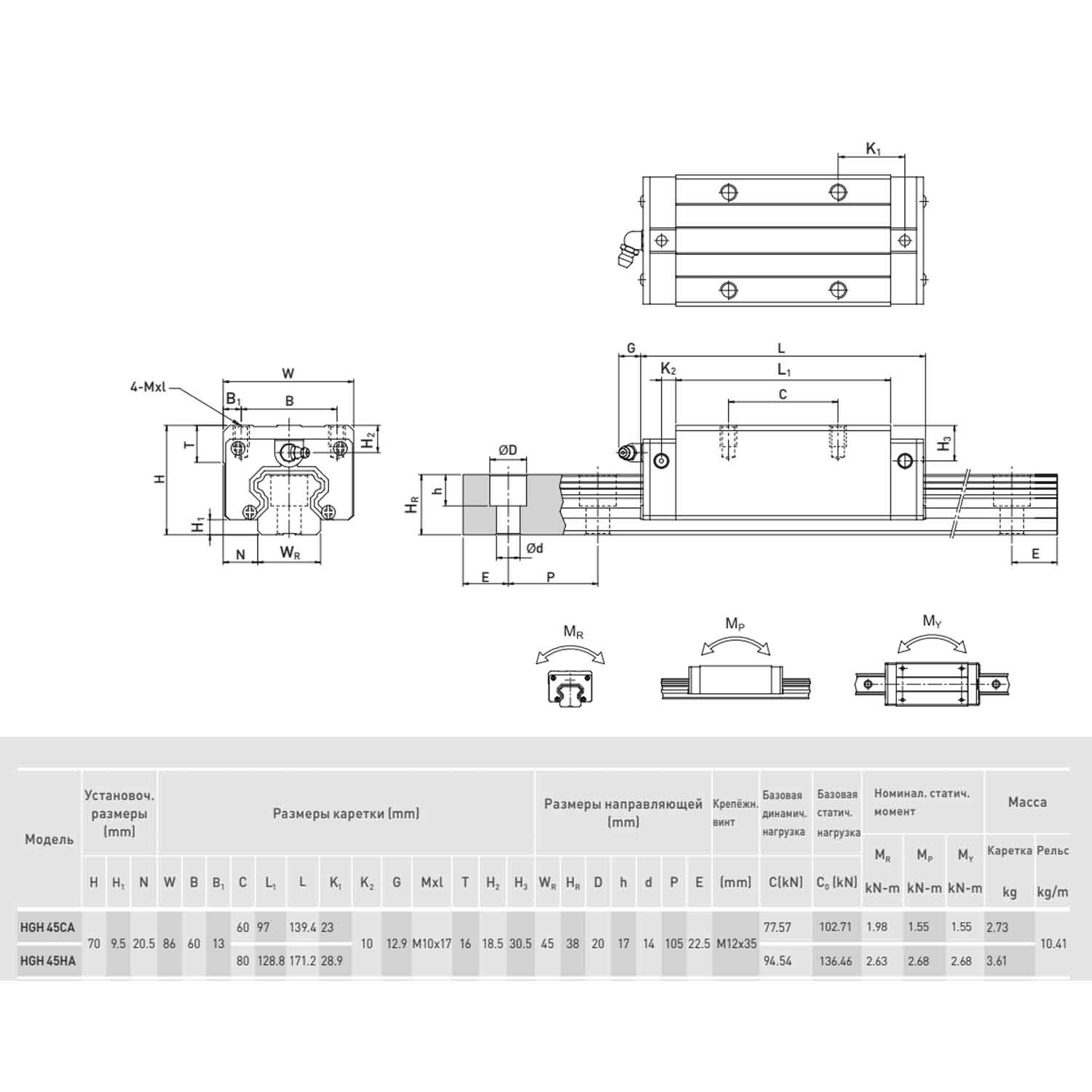 HG - серия шариковых линейных направляющих высокой грузоподъемности (Heavy Load);