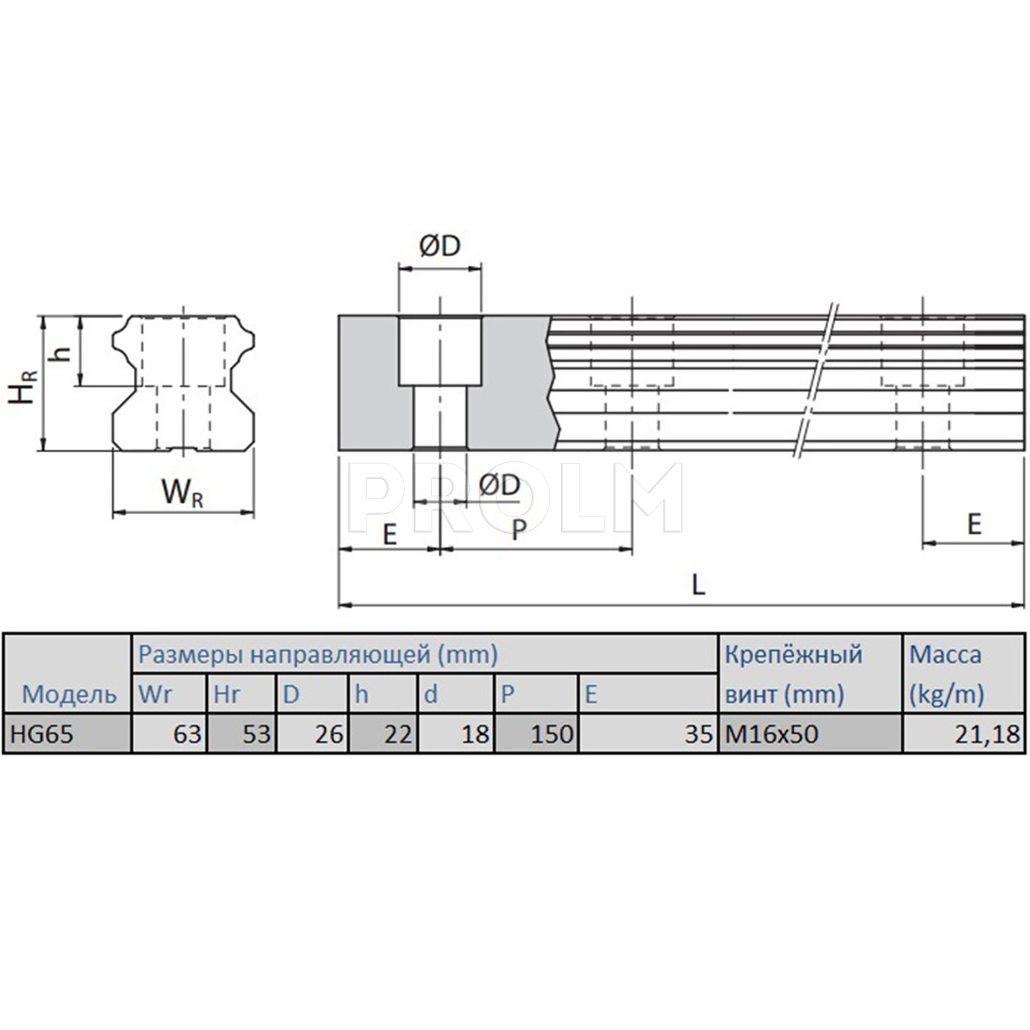 Профильная направляющая (рельс) HIWIN HGR65R_H для систем линейных перемещений имеет следующие характеристики: