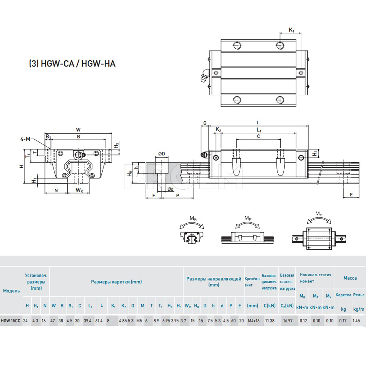 15 - типоразмер (данный параметр определяет размерную совместимость каретки и рельса с учетом серии и требуемой точности);