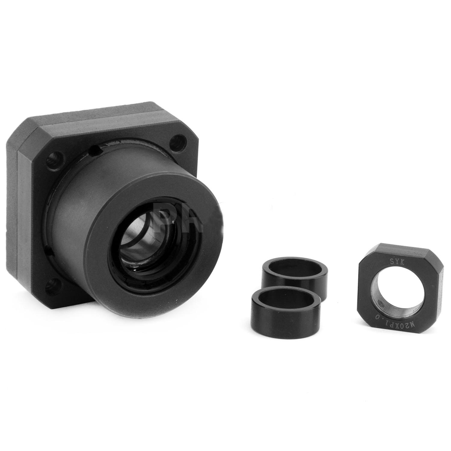 Фиксирующая опора для ШВП серии FK производства SYK состоит из дуплексного радиально-упорного подшипника и корпуса с монтажными отверстиями. Опора предназначена для фиксации винта ШВП в радиальном и осевом направлениях. Используется для жесткой фиксации винта ШВП с приводной стороны. Предназначена для монтажа на перпендикулярную оси винта плоскость. Является парой для опоры серии FF.